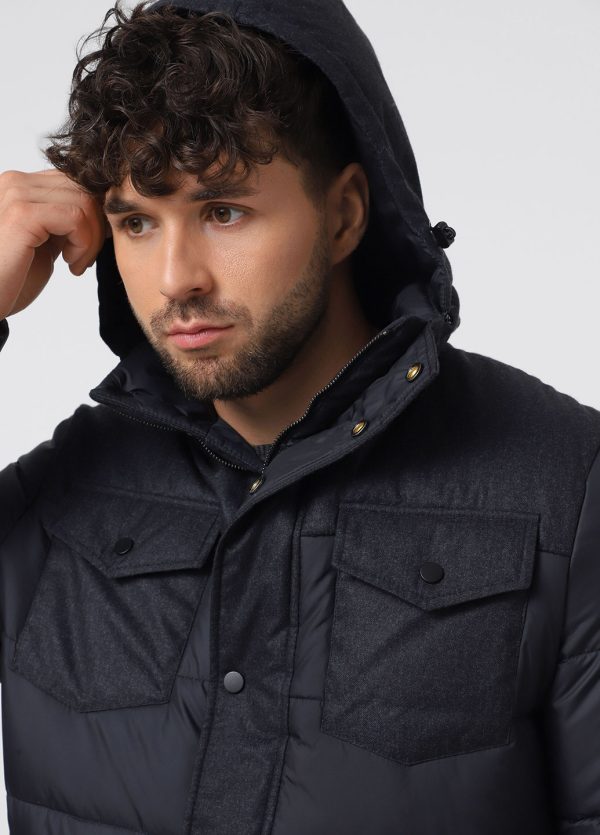 The men’s down jacket DEMIX combines modern design with well-thought-out details to ensure maximum practicality during the cold season. The upper part of the jacket is made from dense membrane fabric, providing protection from wind and moisture in the areas most exposed to weather conditions. The lower part is crafted from lightweight rainwear fabric, adding flexibility and lightness to the silhouette.